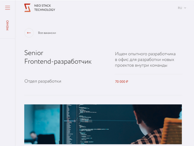 потенциальным сотрудникам компании. Поэтому выбор пал на строгие формы, крупную типографику и